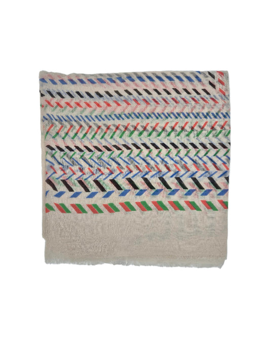 Beige sjaal met kleurrijk zigzagpatroon | Beige
