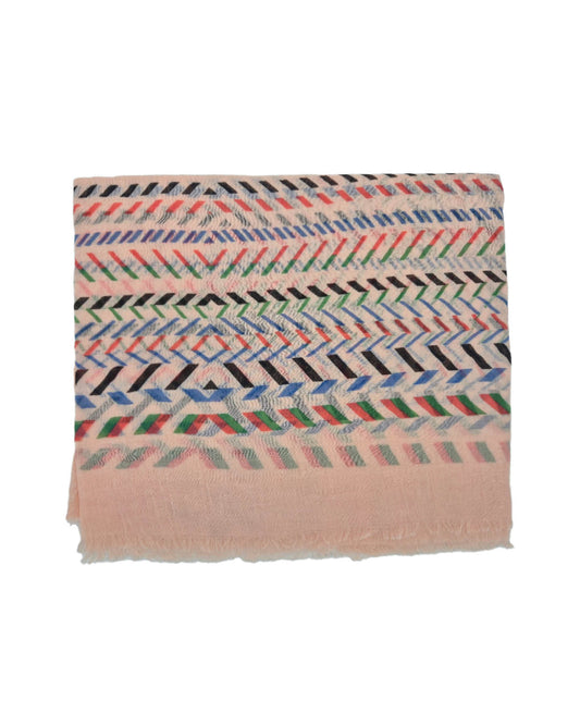 Zachtroze sjaal met kleurrijk zigzagpatroon | Roze