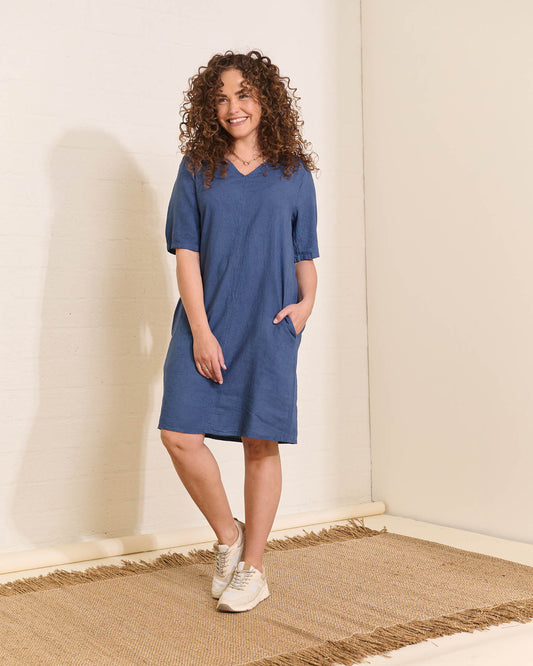 Jurk - Linde Linnen Uni | Donker-Jeans