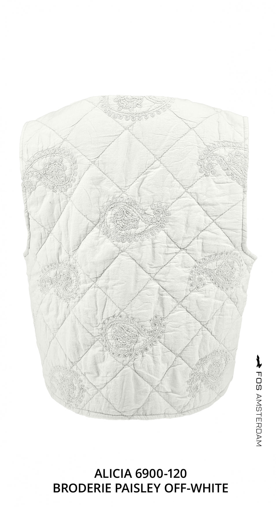 Alicia, een gewatteerd gilet met een uitgewerkte paisley broderie.