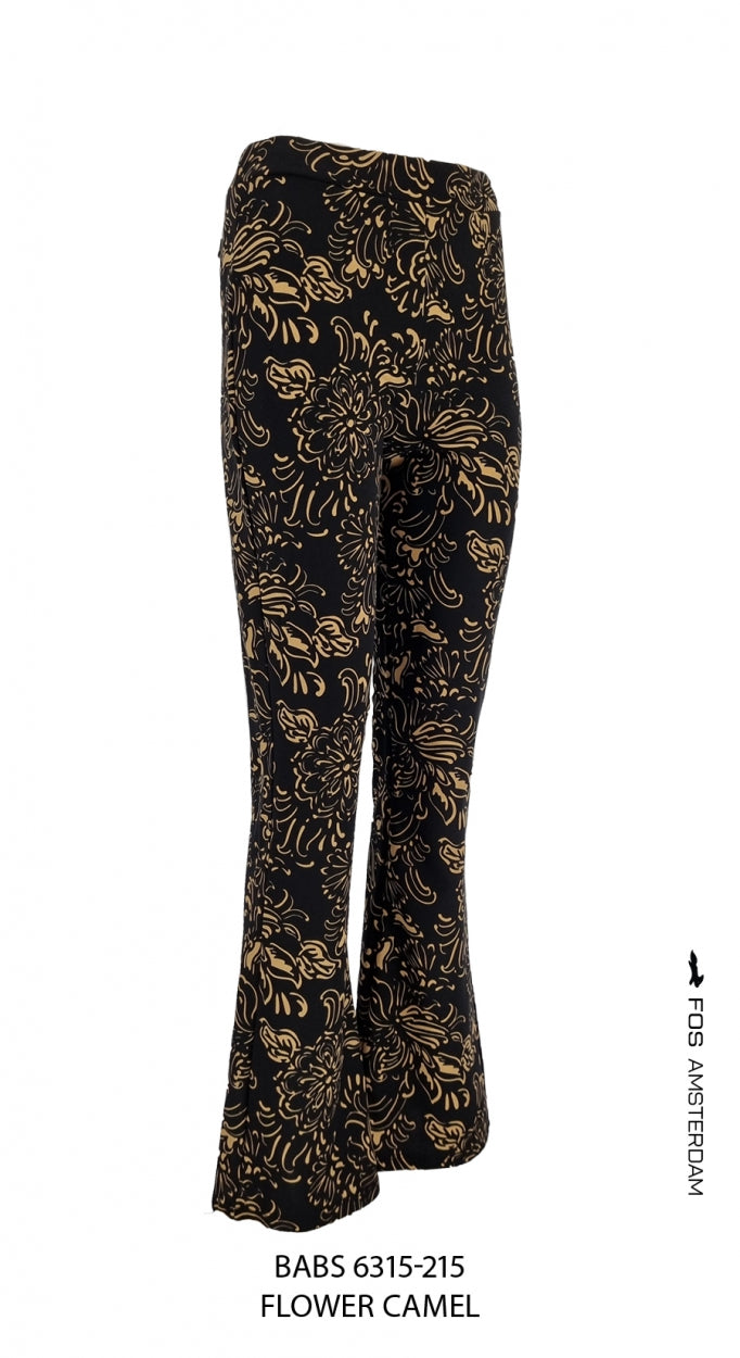 Babs, de flare! Een comfortabele broek met elastische tailleband, steekzakken en wijd uitlopende pijpen ‘flare pants’.