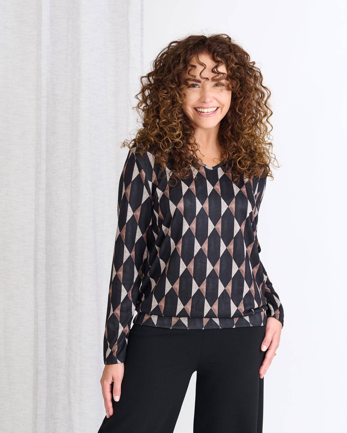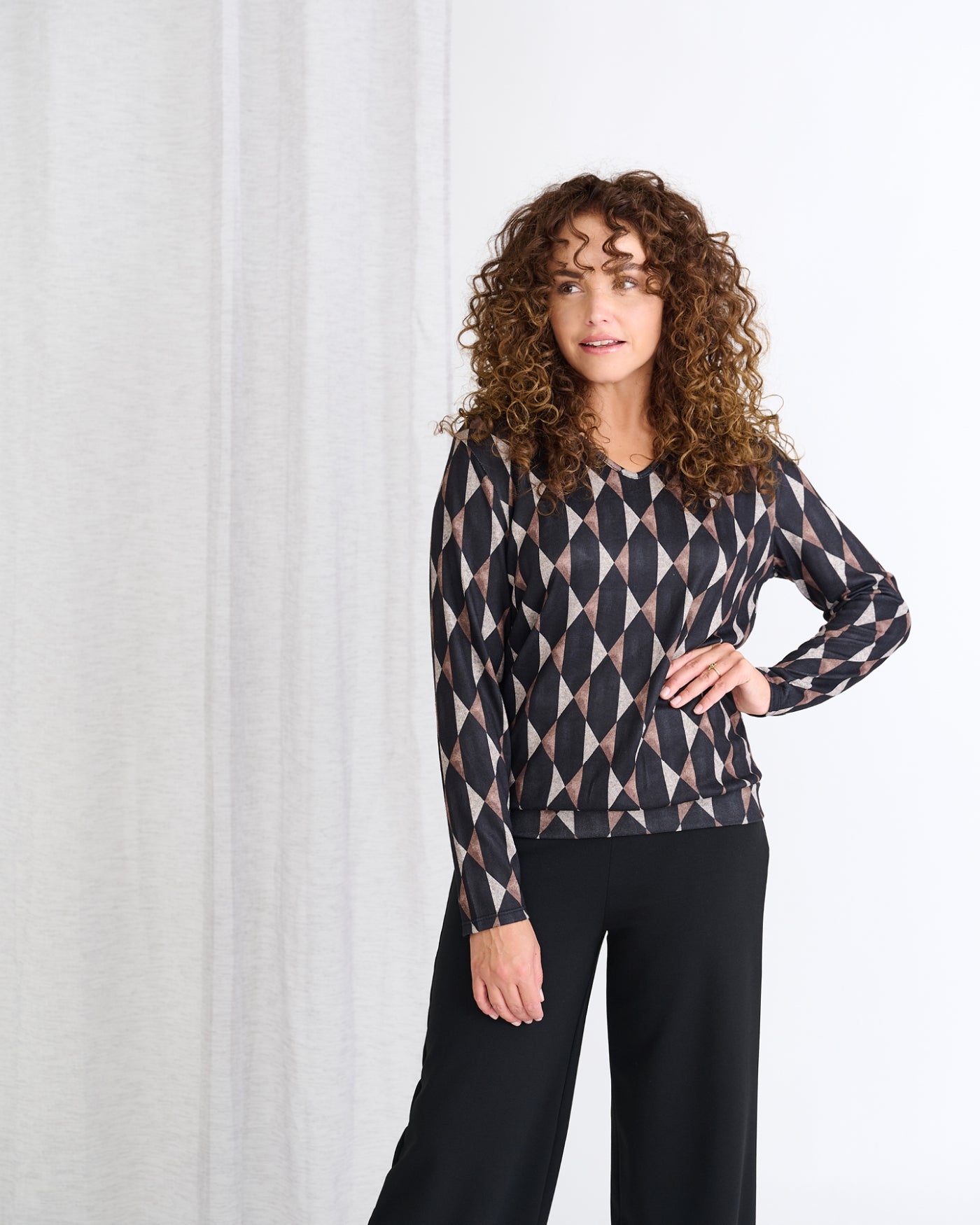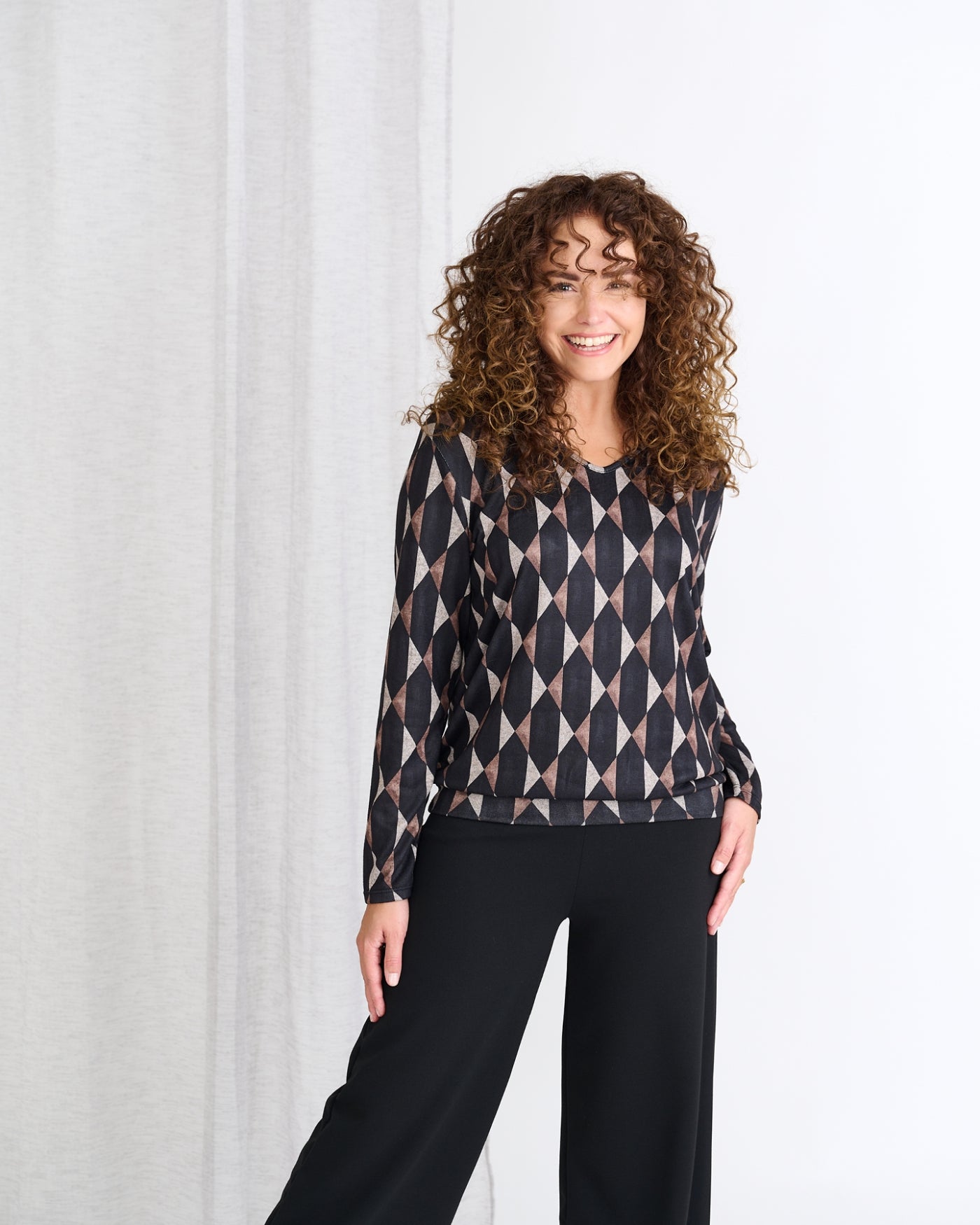 Bella, de top met vrouwelijke V-hals en een en dit keer met een band voor een blousend effect. De top is gemaakt in de cosy fijnbrei kwaliteit die je van ons gewend bent.