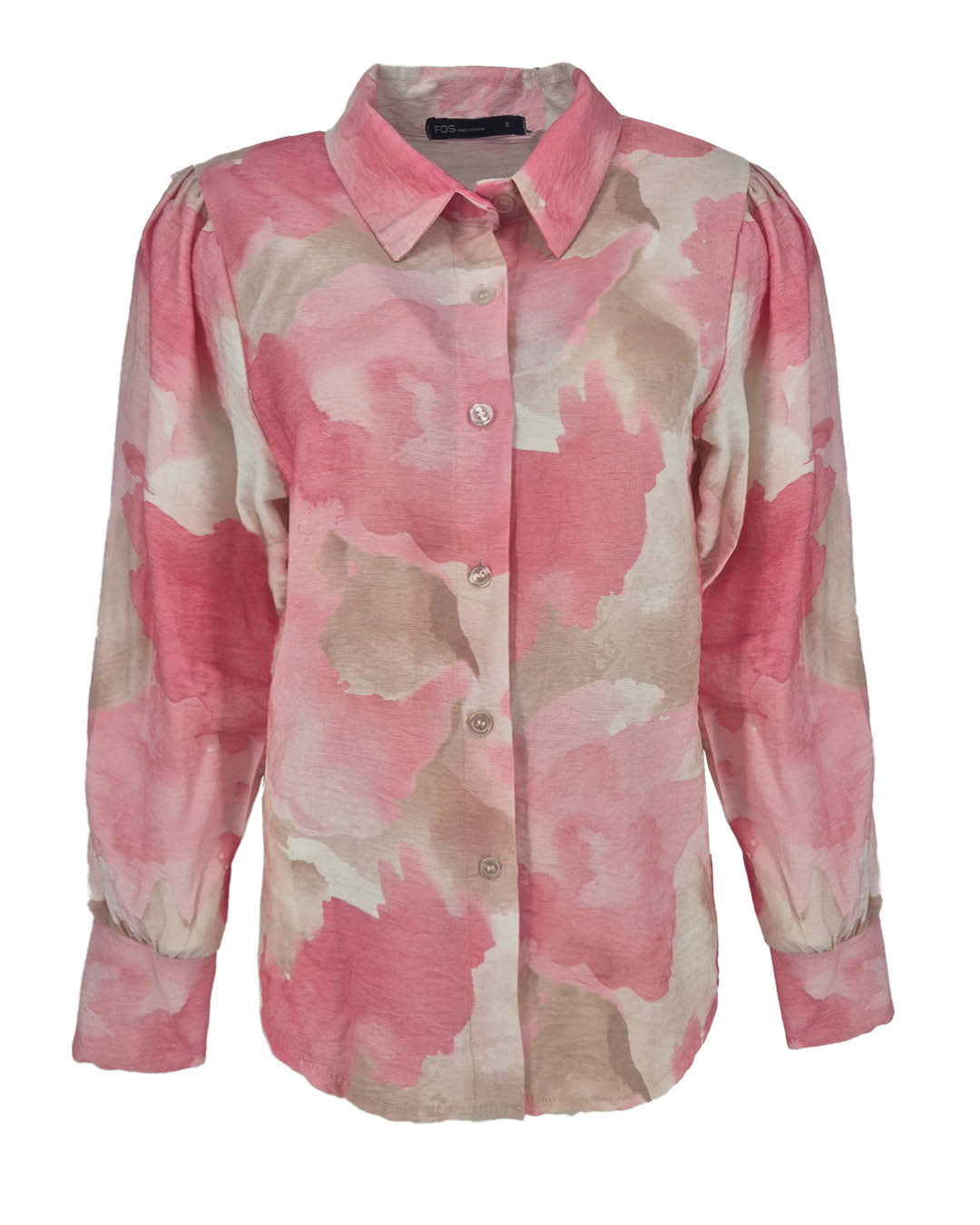 De doorknoop blouse Evita in Roze is uitgevoerd met een grafisch faded dessin en gemaakt van een geweven viscose kwaliteit. De pasvorm zorgt voor een vrouwelijke uitstraling.