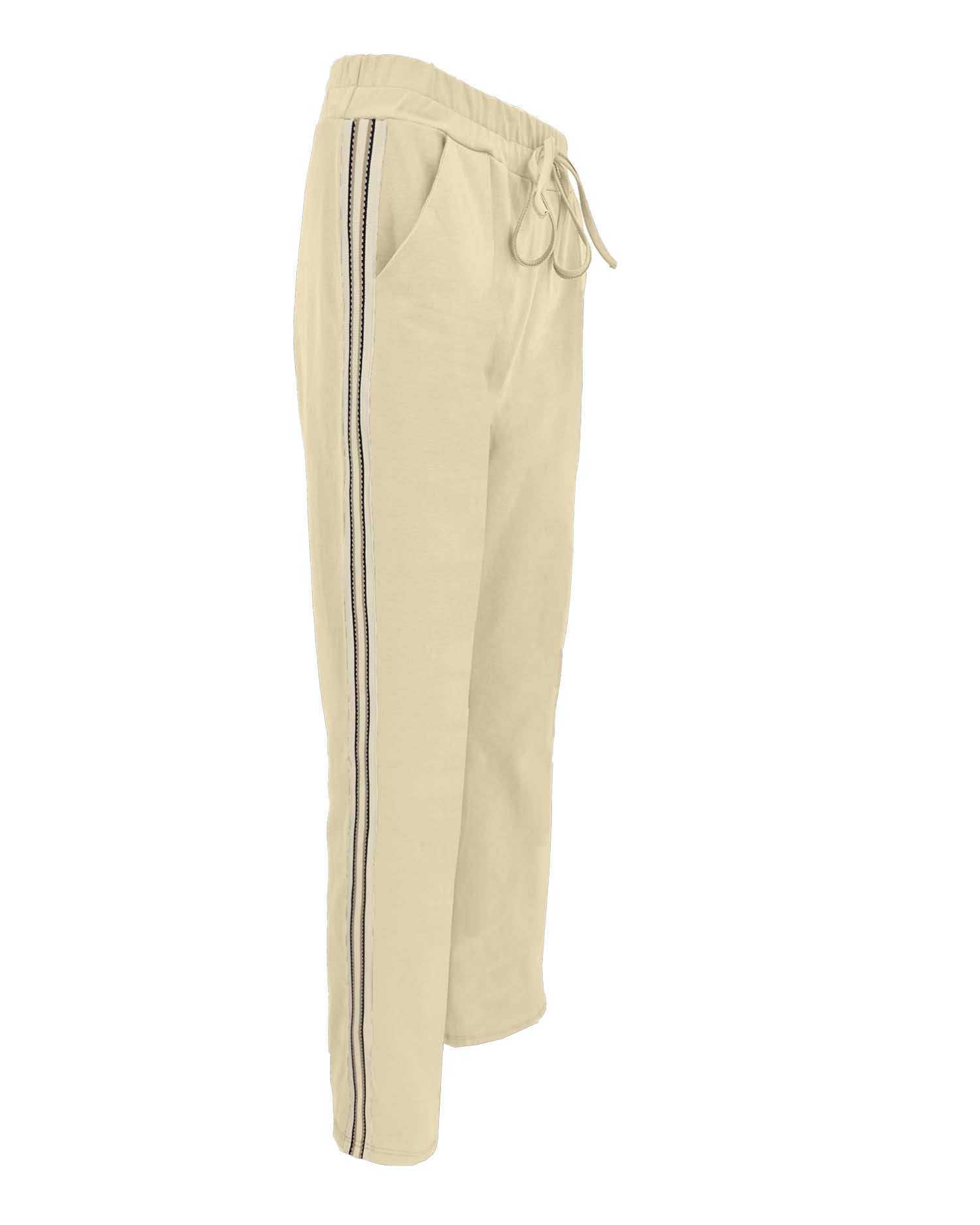 Details: Rechte pijpen, elastische tailleband, contrasterend tape aan de zijkant, pintuck aan de voorzijde.