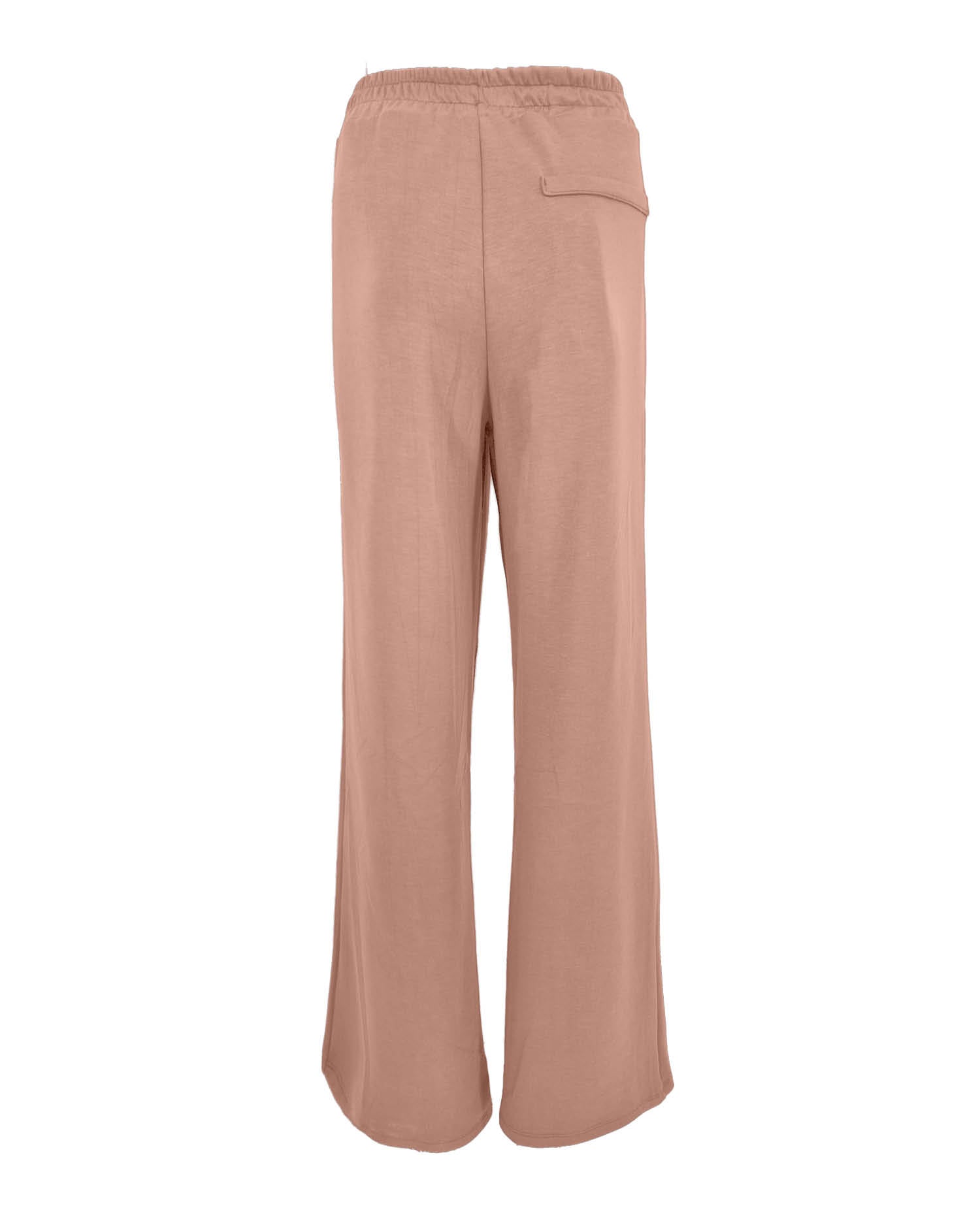De broek heeft wijde pijpen, een striksluiting aan de voorkant en een tone-in-tone zijnaad. De lange lengte en soepele fit maken dit model prettig om te dragen, ideaal voor elke dag.