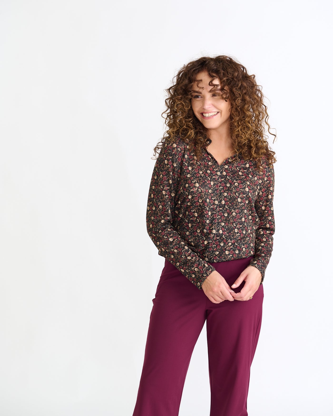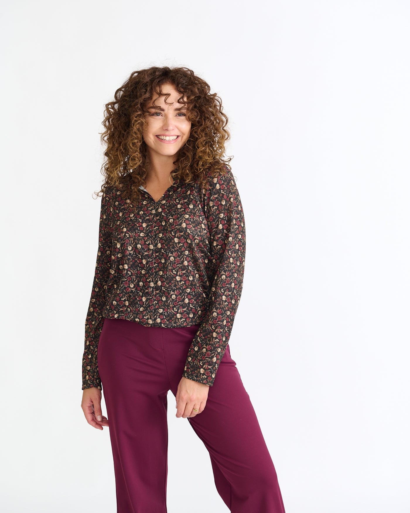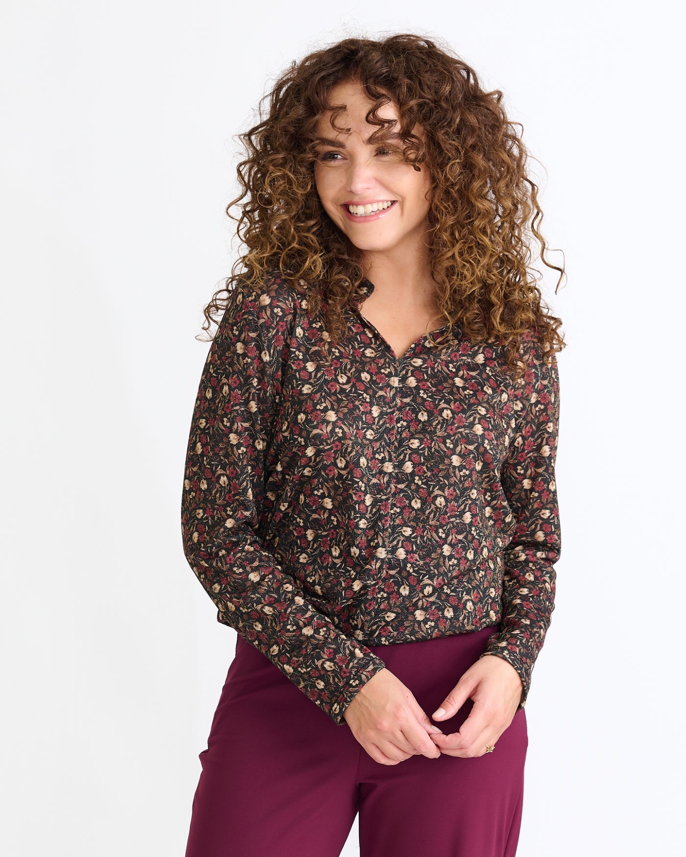 Didi, een vrouwelijke top met een mooie V-hals en een half staand kraagje. Het topje kan op vele manieren worden gecombineerd - voor een elegante of casual-sportieve look, de fijn brei kwaliteit maakt dat het draagcomfort heerlijk is! En… het lurex draadje geeft net dat leuke extraatje!