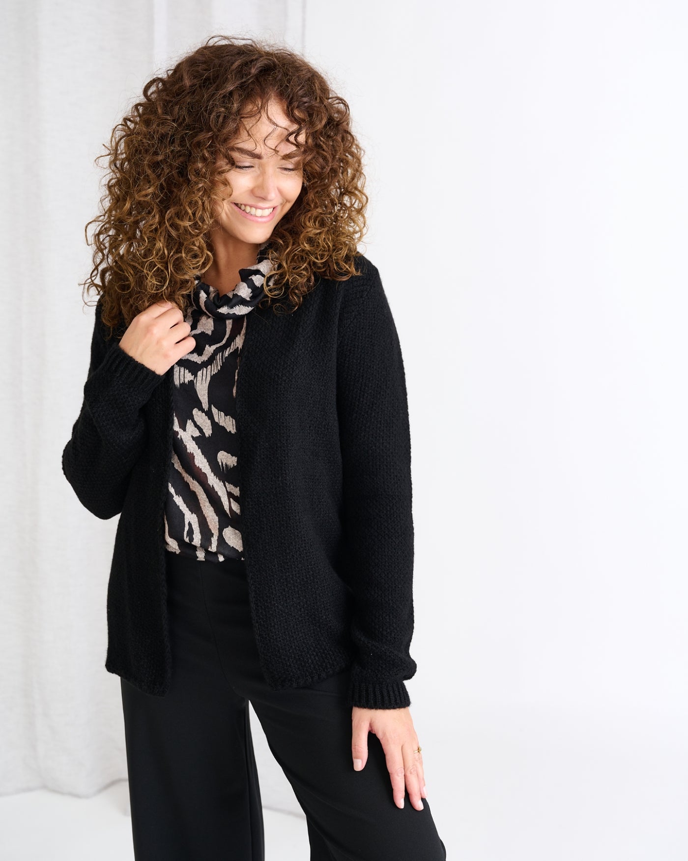 Elin, een gebreid tijdloos vest zonder sluiting.