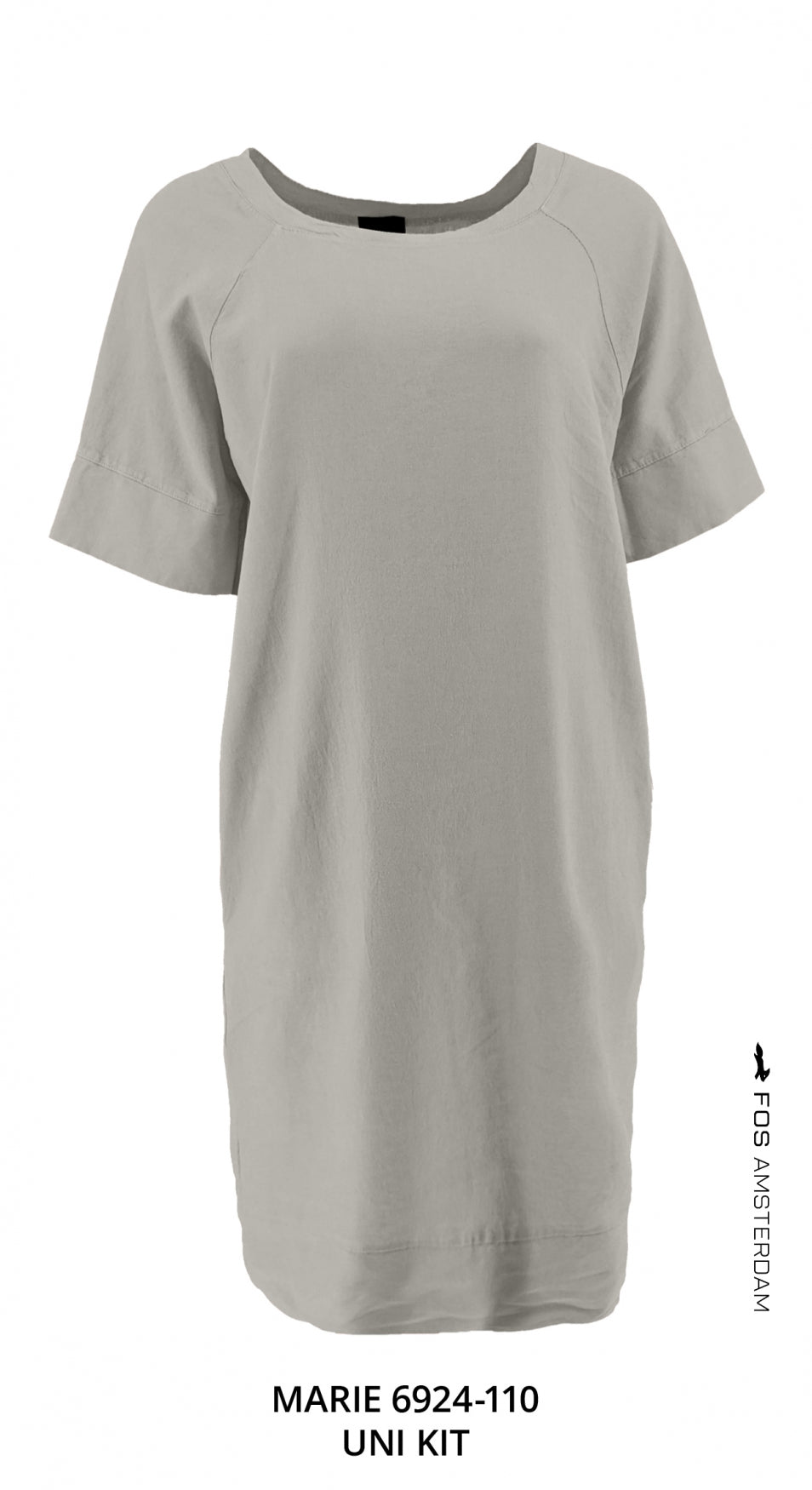 Marie, dé linnen zomer hit. ruimvallendejurk met ronde hals, korte mouwen en steekzakken in de naad. De jurk valt op de knie.