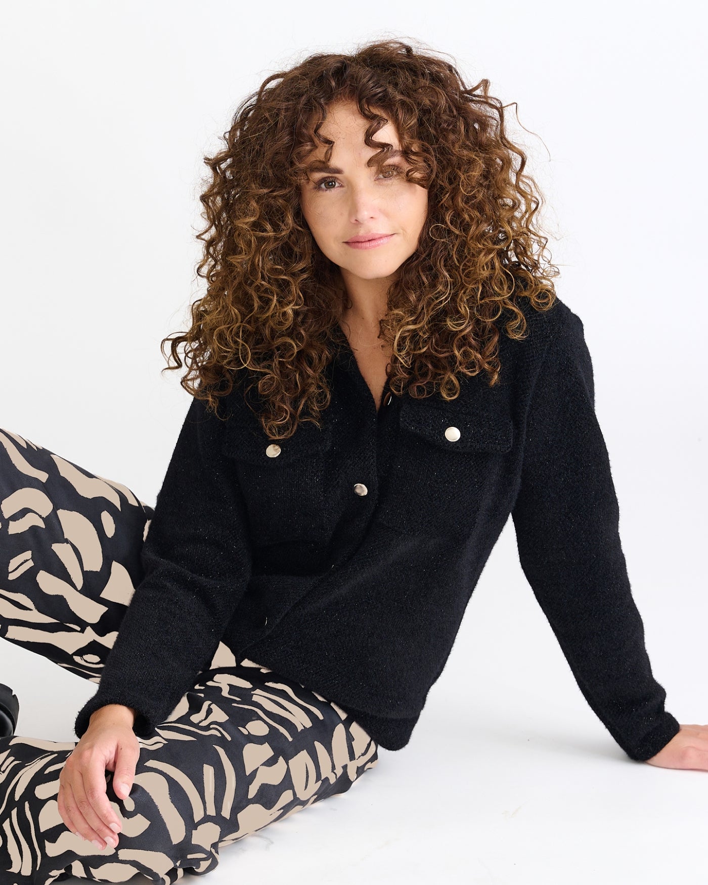 Lizzy, een rijk jasje van duffel kwaliteit met een lurex accent.