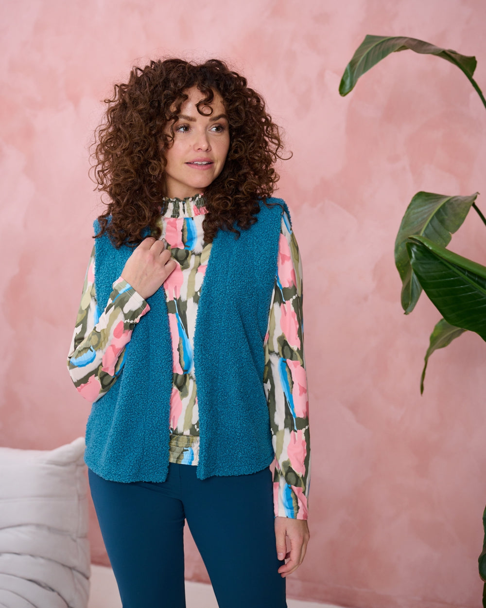 Margriet, een leuk gilet met een fijn boucle stofje, eindeloos combineren!