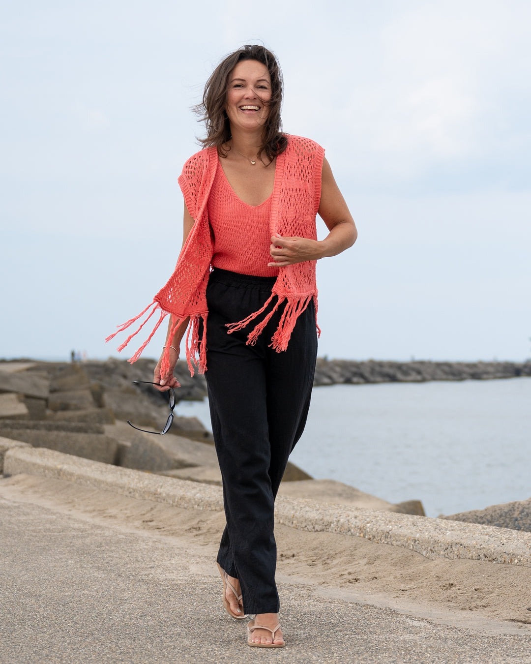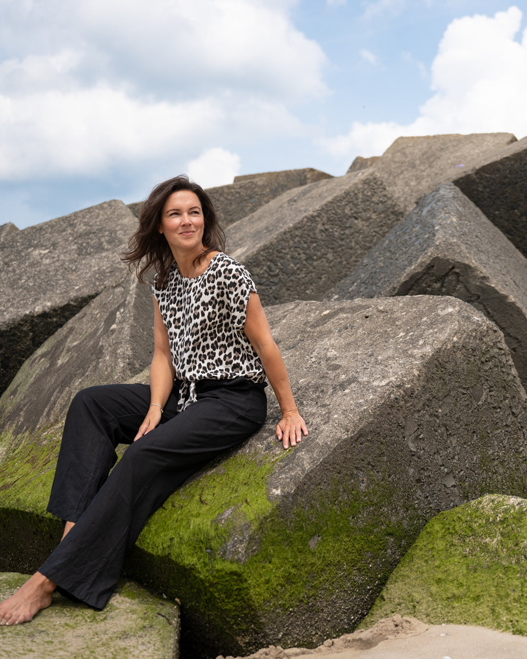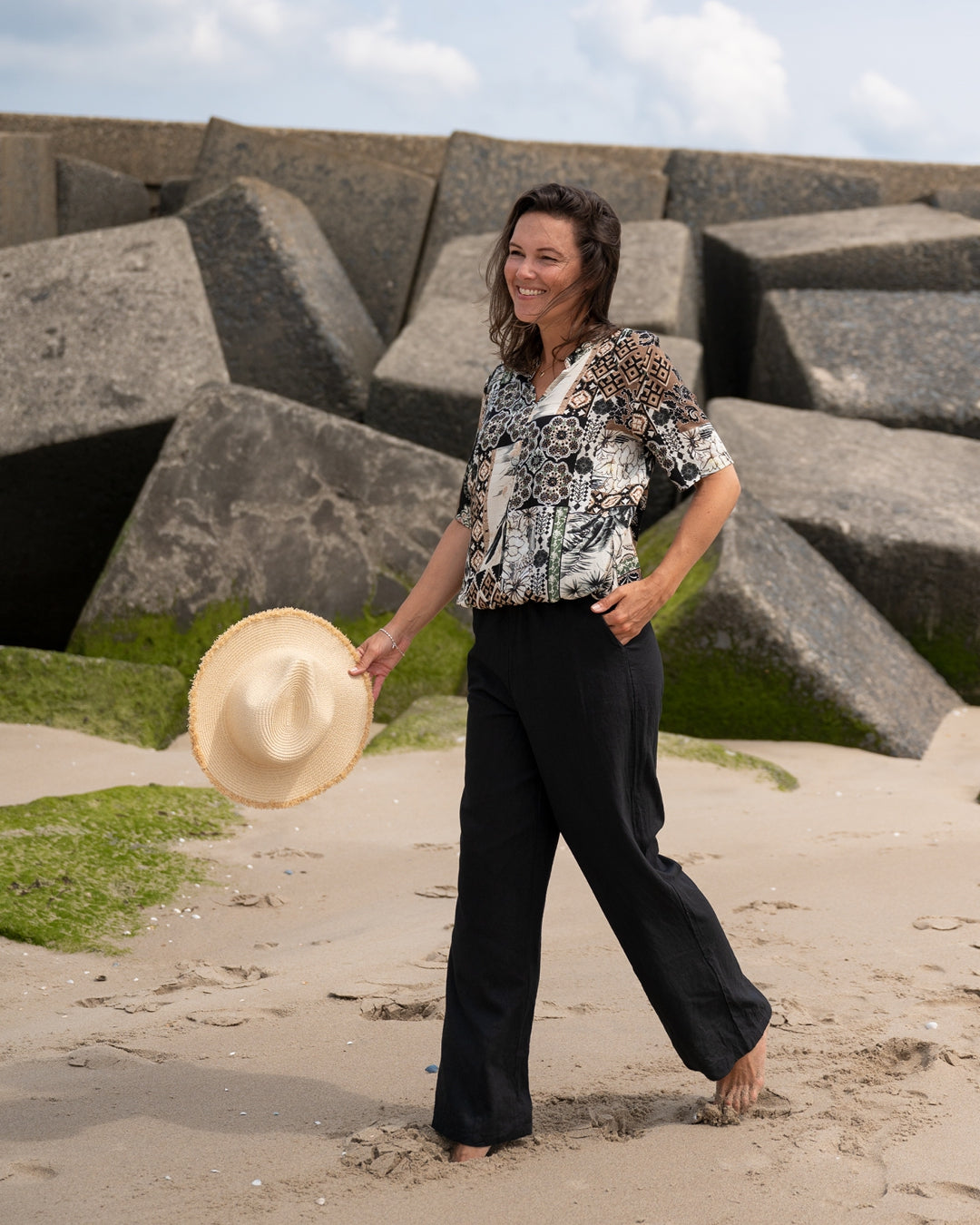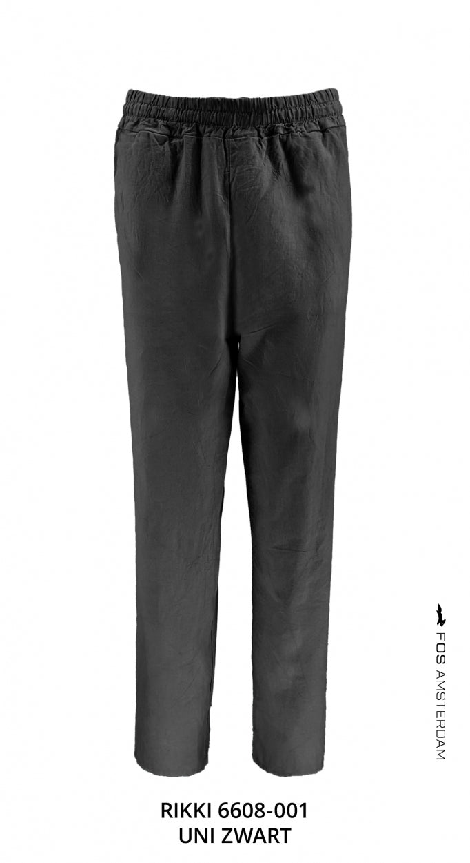 Rikki, de broek in de linnen viscose kwaliteit met wijde pijpen en twee broekzakken.