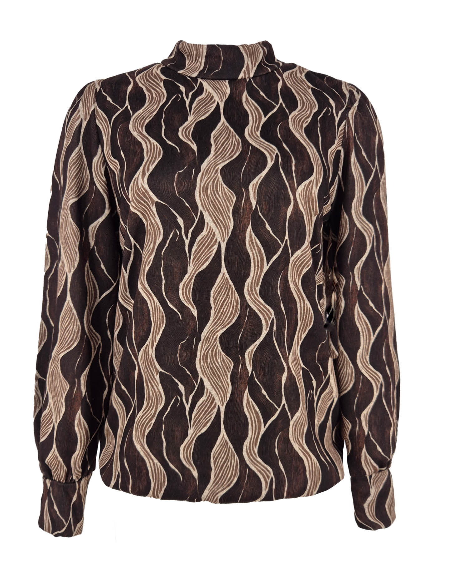 Deze bruine blouson Adina combineert comfort met vrouwelijke elegantie. Het grafisch dessin in fijnbrei kwaliteit valt prachtig om het lichaam, terwijl de elastische boorden en lage kol voor een subtiel balloneffect zorgen. Een stijlvol truitje voor elke gelegenheid. Verkrijgbaar in bruin en bordeaux.