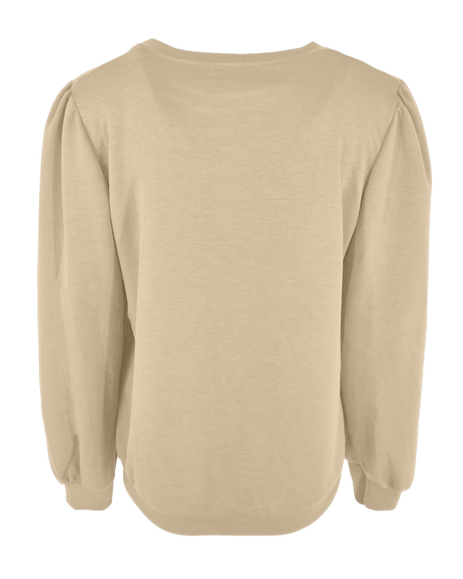 De Jette trui in beige is een stoere en trendy top met een relaxte uitstraling. Gemaakt van een zachte stretchkwaliteit biedt deze trui ultiem draagcomfort zonder in te leveren op stijl. De effen stof geeft ruimte om eindeloos te combineren, terwijl de licht geplooide schouderaanzet en de brede manchetten zorgen voor een vrouwelijke touch met een modieuze twist.