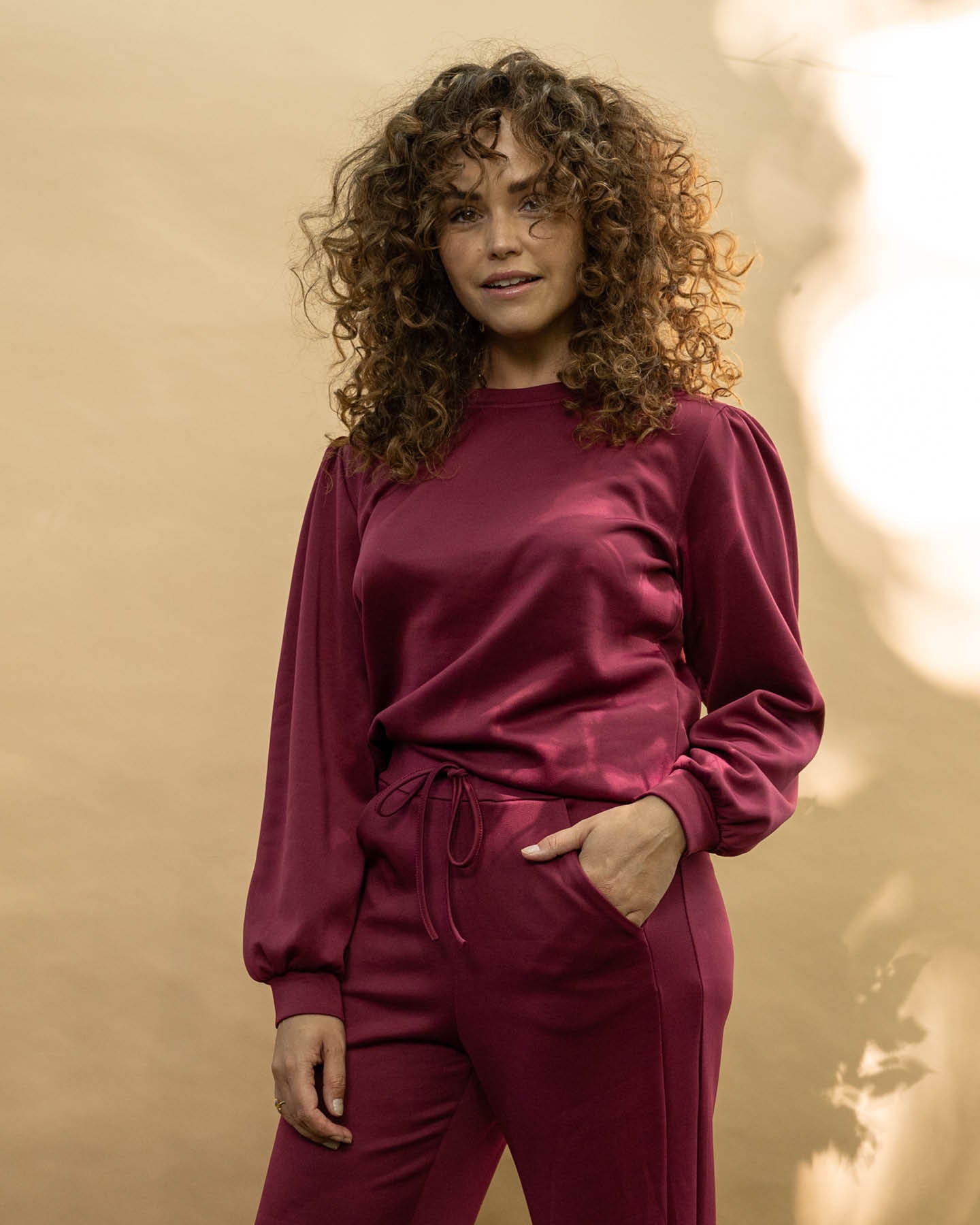 De Jette trui in modieus bordeaux is een stoere en trendy top met een relaxte uitstraling. Gemaakt van een zachte stretchkwaliteit biedt deze trui ultiem draagcomfort zonder in te leveren op stijl. De effen stof geeft ruimte om eindeloos te combineren, terwijl de licht geplooide schouderaanzet en de brede manchetten zorgen voor een vrouwelijke touch met een modieuze twist.